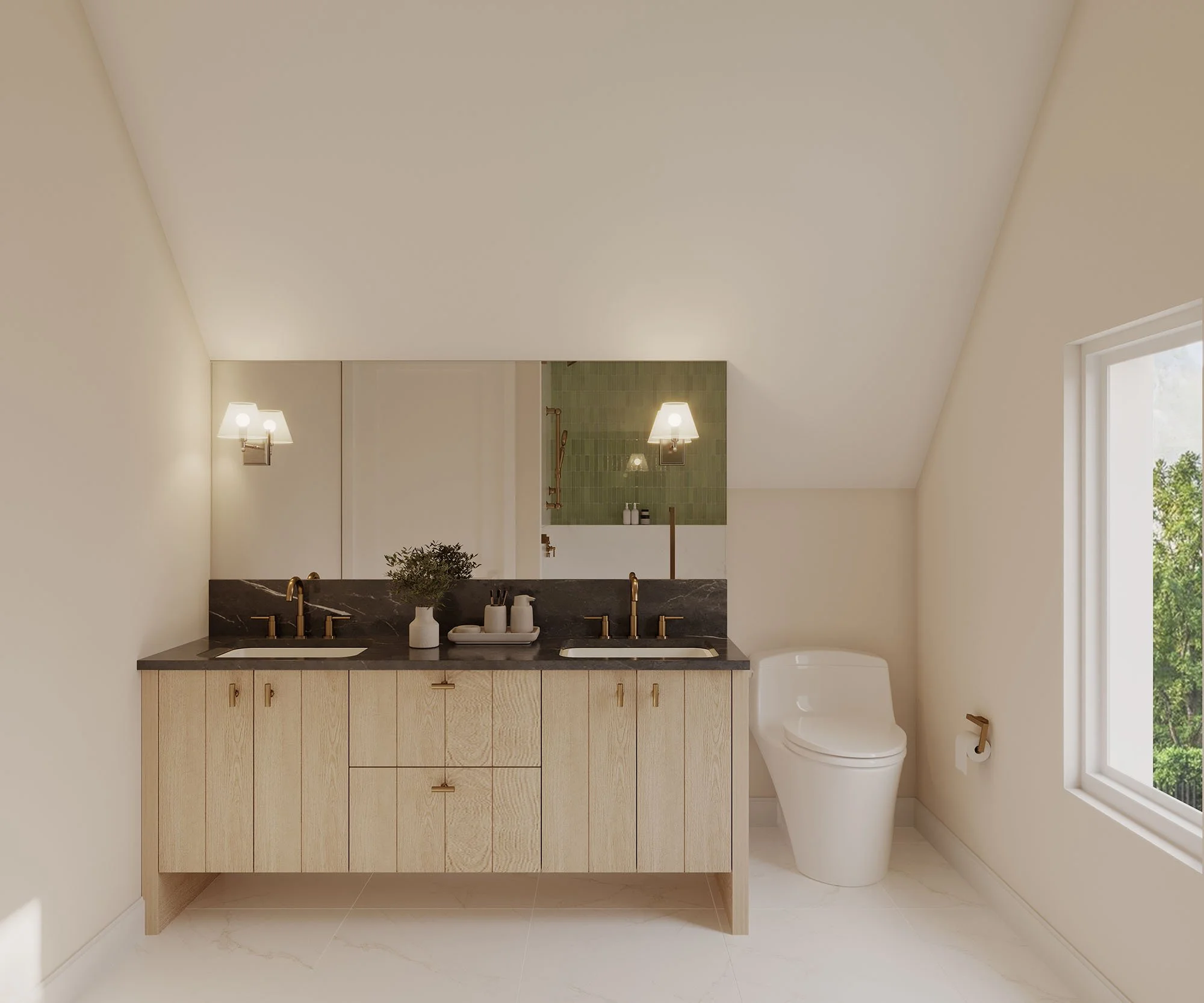 Spanning over 2,100 ft² across two expansive levels, the Primary Residence offers 4 bedrooms, 3 bathrooms, and a private EV-ready garage—crafted for families who value both space and sophistication. At its heart is a chef-inspired kitchen, complete with custom cabinetry, a striking central island in a contrasting finish, premium appliances, and timeless detailing. Large windows and a bright, open layout create an inviting environment that seamlessly balances everyday living with elegant entertaining. Designed with enduring craftsmanship and thoughtful flow, the Primary Residence delivers the comfort and presence of a detached home, paired with the efficiency and refinement of new construction.