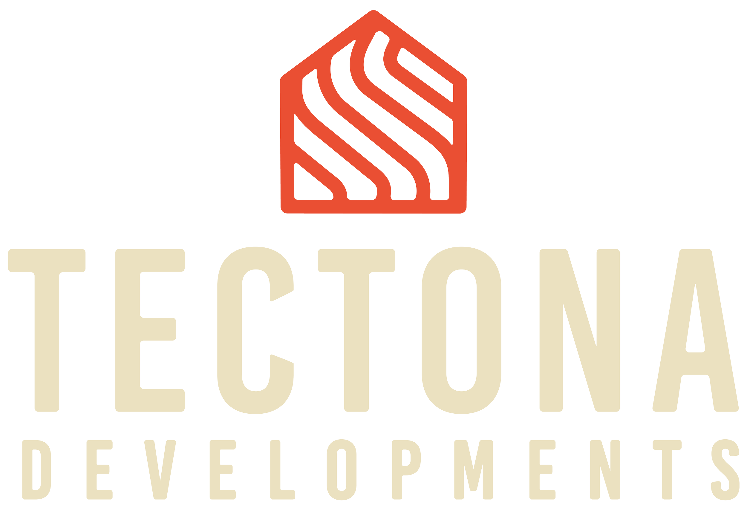 The logo of Tectona Developments with a stylized red and black house icon above the company name in beige capital letters.